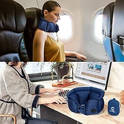 Skin friendly – produced from elastic TPU fabric material, its composite edge sealing and water-resistant material makes cleaning as easy as wiping with a damp cloth, also the neck pillow uses the newest design, with extra air bags to support the neck. The design also allows the neck pillow to be wear with either side up.
